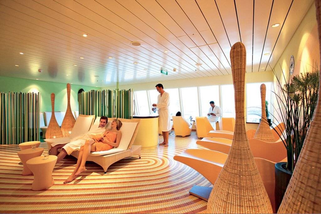 Na pokładzie znajdują się restauracje bufetowe i specjalistyczne – m.in. włoska, sushi bar i steakhouse – a także liczne bary i kawiarnie. Goście mogą korzystać z dużego pokładu słonecznego, trzech basenów, jacuzzi, bogatej strefy spa, boisk do siatkówki oraz kortu do squasha.