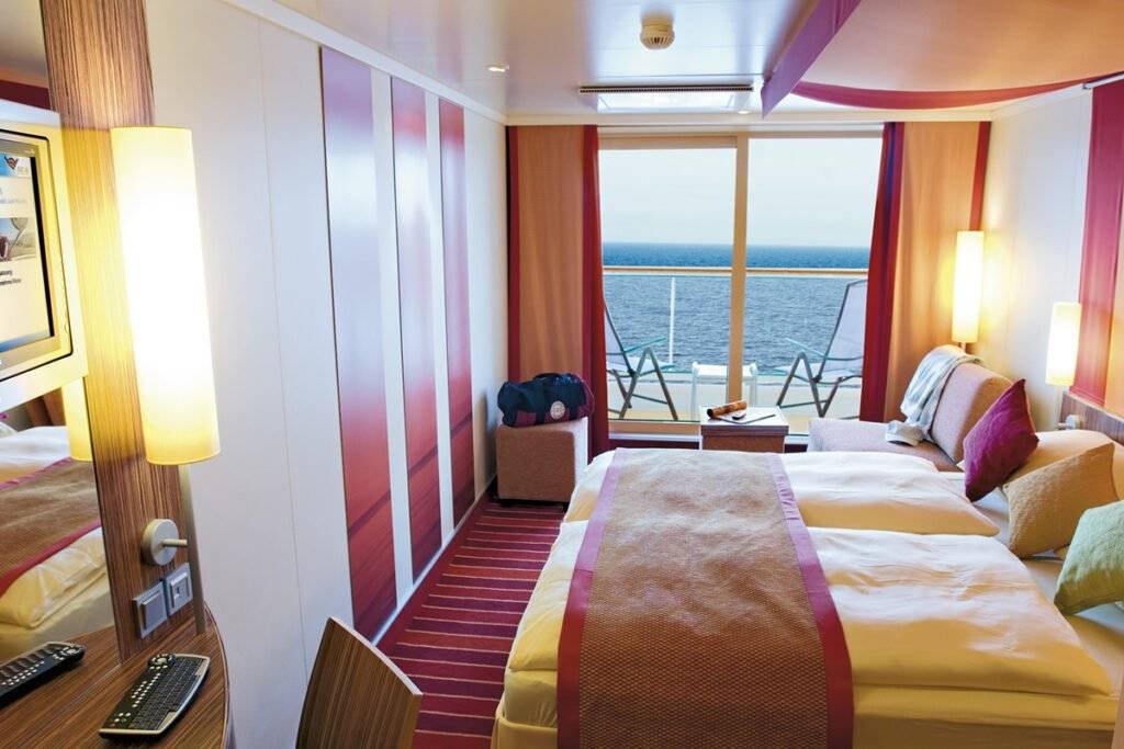 Komfortowa kabina o powierzchni 14–16,5 m², z oknem (w kategorii CA – widok częściowo ograniczony). Wyposażona w dwa łóżka z możliwością zestawienia, łazienkę z prysznicem i WC, garderobę, część dzienną i toaletkę.