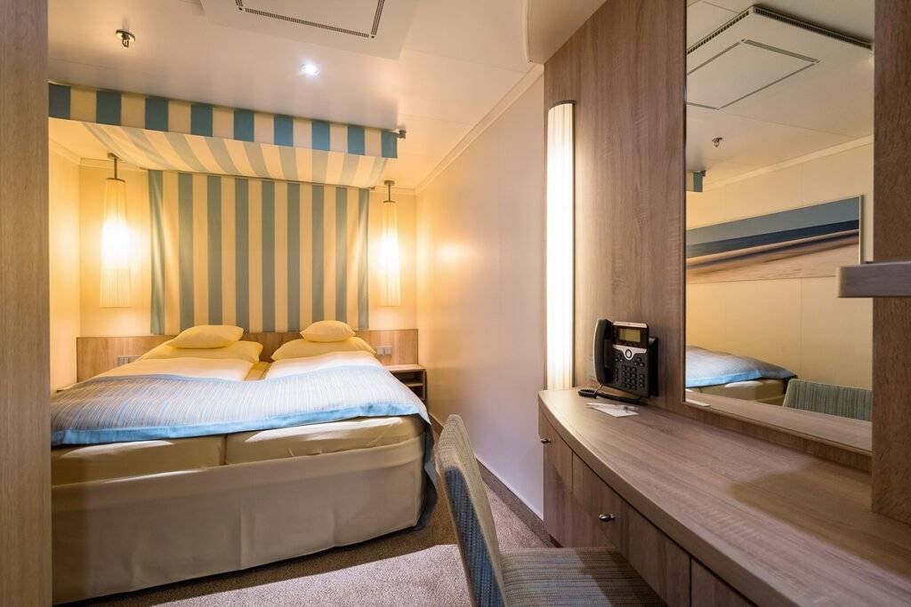 Powierzchnia ok. 22–23 m², dla 2–4 osób. Wyposażona podobnie jak kabina wewnętrzna, dodatkowo z oknem z widokiem na morze. Doskonałe miejsce, by cieszyć się krajobrazem podczas rejsu.