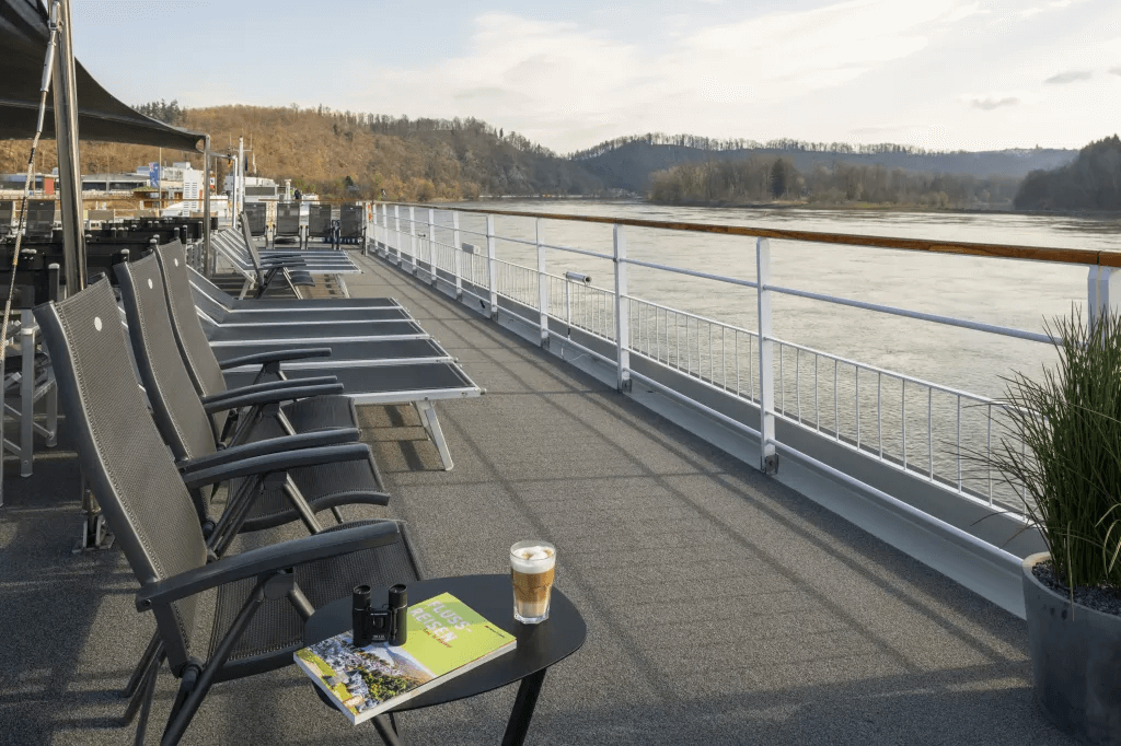 Na pokładzie znajdują się elegancka restauracja, panoramiczny salon z barem, strefa wellness z sauną i jacuzzi, a także przestronny taras słoneczny z basenem i leżakami. To idealne miejsce na relaks, podziwianie malowniczych krajobrazów i spędzanie czasu w atmosferze pełnej komfortu.