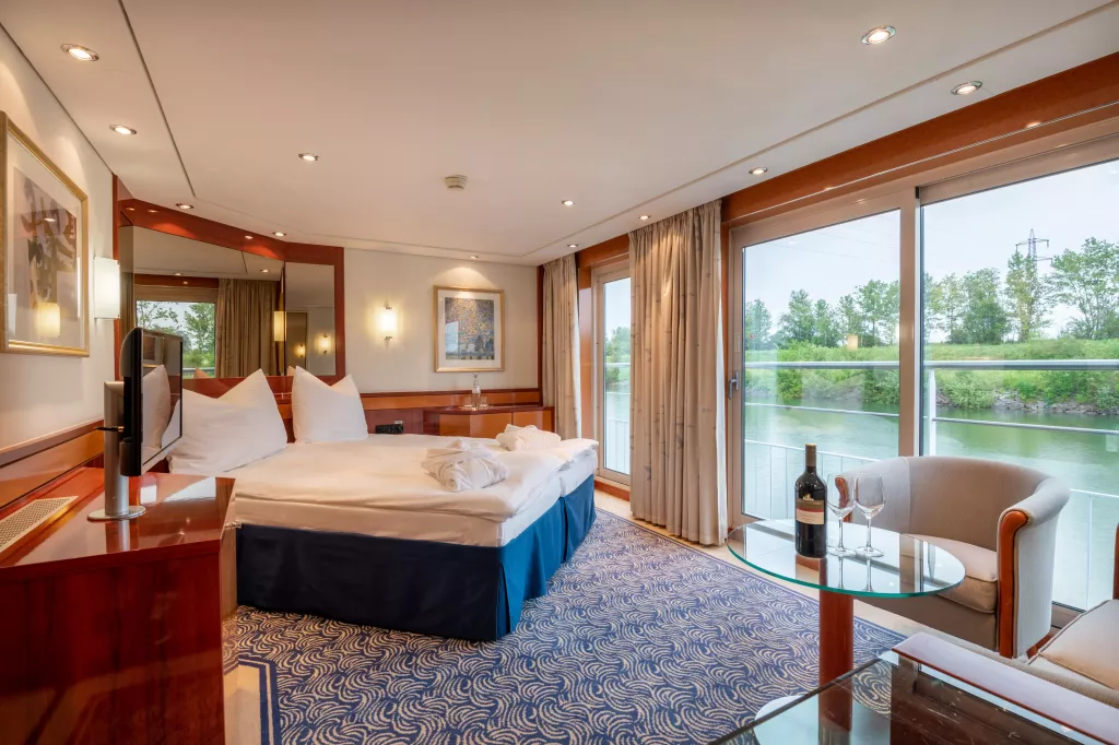 Przestronne kabiny na górnym pokładzie, o powierzchni 22 m², z panoramicznymi oknami i łóżkami ustawionymi pod kątem, by zapewnić jak najlepszy widok na rzekę. Oferują dodatkowe udogodnienia, takie jak większe szafy, dodatkowe miejsce do przechowywania i przytulny kącik wypoczynkowy, a jednocześnie zachowują pełne wyposażenie standardowych kabin.