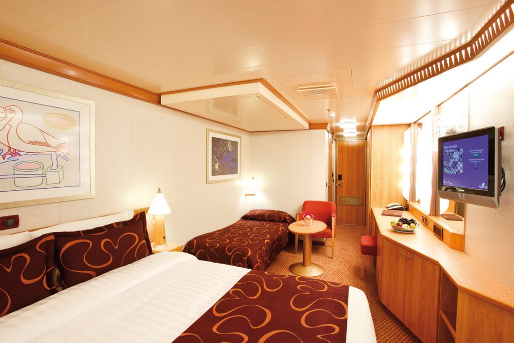Komfortowa kabina o powierzchni 14–18 m², wyposażona w podwójne łóżko lub dwa pojedyncze, łazienkę z prysznicem, TV, radio, telefon, sejf oraz minibar. Do dyspozycji gości jest także klimatyzacja, zapewniająca idealne warunki podczas rejsu.