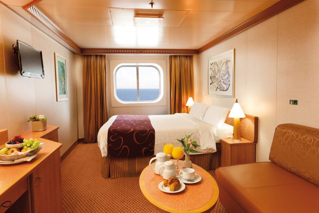 Udogodnienia obejmują interaktywną TV satelitarną, klimatyzację, telefon, suszarkę do włosów, minibar i prywatny sejf, zapewniając wygodny i komfortowy pobyt podczas rejsu.