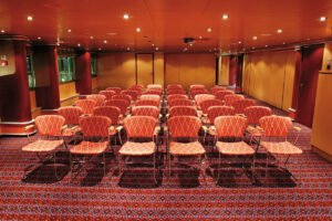 Wyposażenie obejmuje TV satelitarną, radio pokładowe, klimatyzację, telefon wewnętrzny, suszarkę do włosów, minibar, sejf oraz 24-godzinny Room Service, zapewniając komfortowy wypoczynek podczas rejsu.