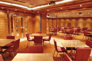 Udogodnienia obejmują TV satelitarną, radio pokładowe, klimatyzację, telefon wewnętrzny, suszarkę do włosów, minibar, sejf oraz 24-godzinny Room Service, gwarantując wygodny pobyt podczas rejsu.