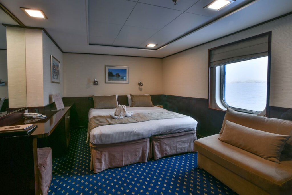 Kabiny kategorii A również znajdują się na głównym pokładzie, oferując duże okna. Wyposażone w dwa łóżka (pojedyncze lub podwójne na życzenie), łazienkę z prysznicem oraz wygodne udogodnienia, takie jak telewizor z DVD, minibar/lodówka, telefon, sejf i suszarka do włosów.