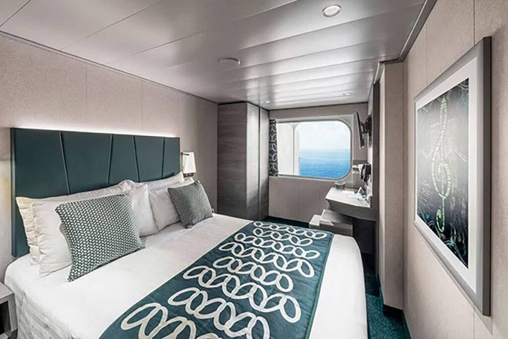 Ok. 16 m², pokład 5. Łóżko dwuosobowe (możliwość rozdzielenia), łazienka z prysznicem, telewizor, sejf, mini bar, biurko, klimatyzacja, wi-fi za dopłatą.