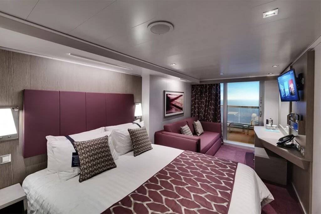 16–18 m² + balkon 5–9 m², łóżko king-size z możliwością rozdzielenia, rozkładana sofa, duża szafa, łazienka z prysznicem. Wyposażenie: suszarka, TV, telefon, sejf, minibar, płatny internet.