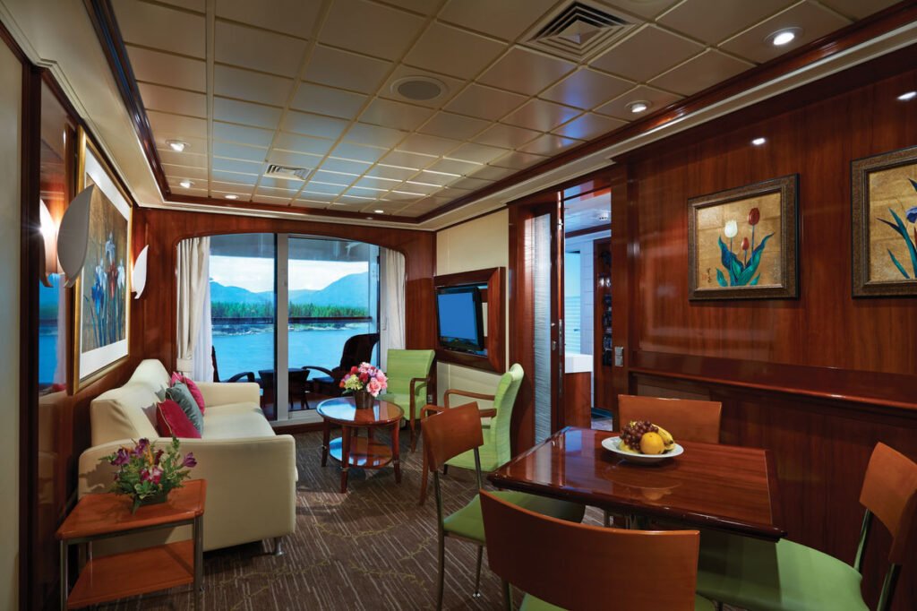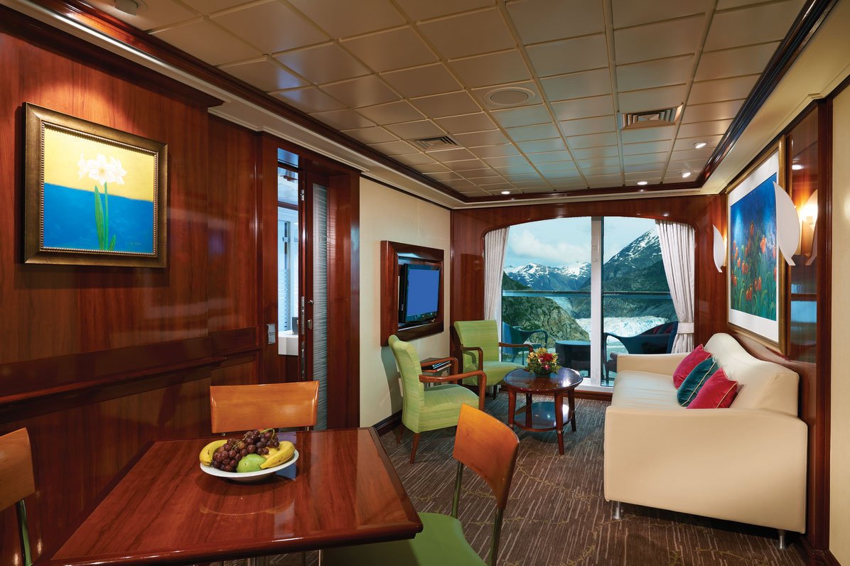 Kategorie BA, BB, BC, BD, B1, B2, B3, pokłady 8, 9, 10. Powierzchnia ok. 19 m2. Dwa dolne łóżka lub łóżko podwójne, łazienka z prysznicem. Balkon z meblami ogrodowymi. Część dzienna z rozkładaną sofą, w niektórych kategoriach górne łóżko dla dodatkowej osoby. Telewizor, telefon, minibar, klimatyzacja, sejf, room service 24/7.