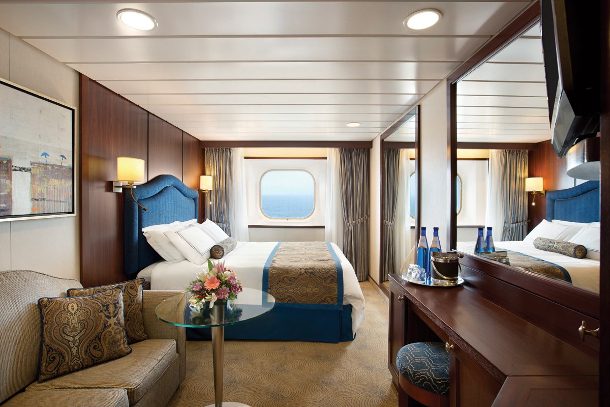 Apartamenty z garderobą, dużą łazienką (podwójna umywalka), werandą i całodobową obsługą lokaja. Priorytetowe zaokrętowanie, dostęp do Executive Lounge, powitalny szampan i pełen pakiet udogodnień premium.