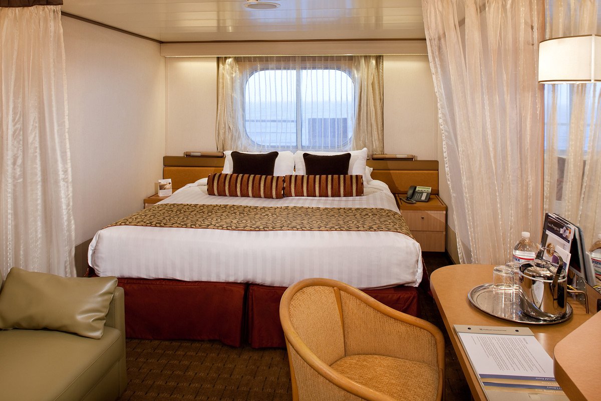 Kabiny z oknem kategorii C, D, DA, DD, E, EE, F, FF, G, H i HH (13–30 m²) zapewniają komfortowy wypoczynek w eleganckim otoczeniu. Każda z nich wyposażona jest w dwa łóżka z możliwością zestawienia, łazienkę z wanną i prysznicem, klimatyzację, TV i DVD, suszarkę do włosów oraz wysokiej jakości pościel i ręczniki. W kabinach kategorii FF znajduje się dodatkowo sofa i rozkładane łóżko.